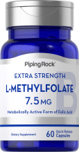 At PipingRock®, we use expert sourcing and scientific formulation to bring you the best source of L-Methylfolate to fulfill your nutritional needs. Our maximum strength formula provides 15 mg of L-Methylfolate per quick-release capsule and is lab tested for purity and potency to meet our exceptional quality standards.